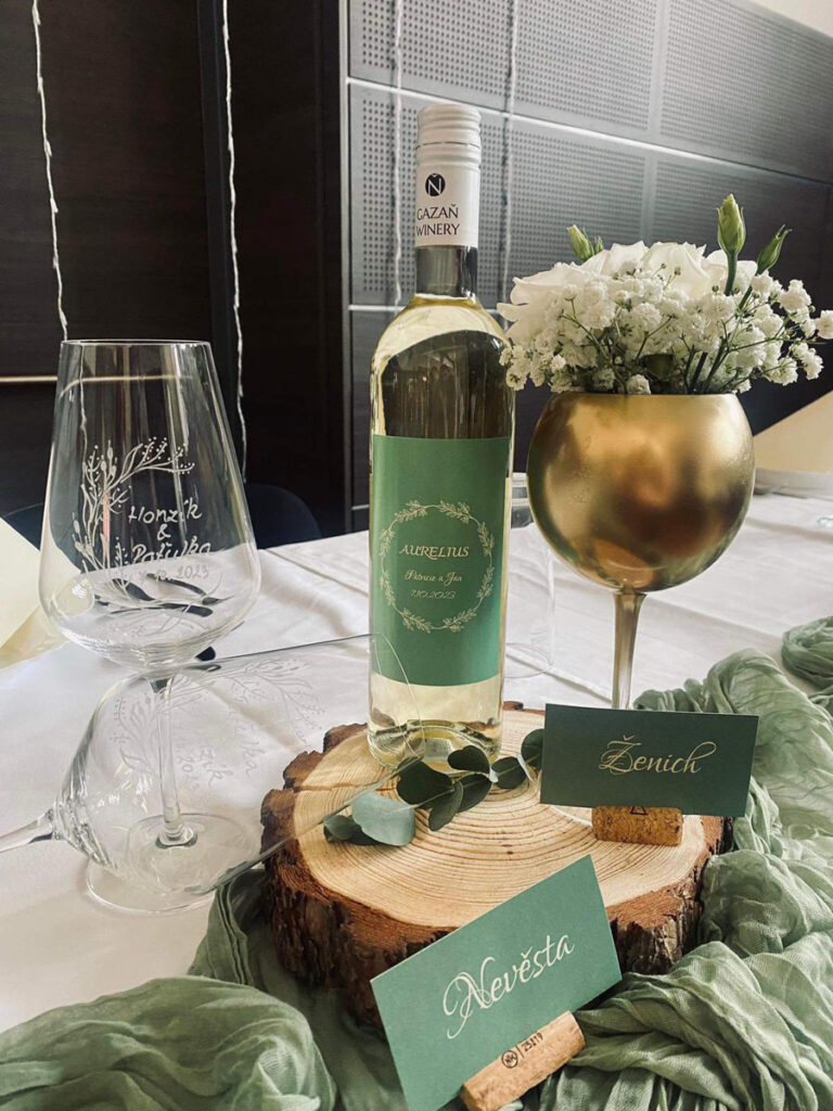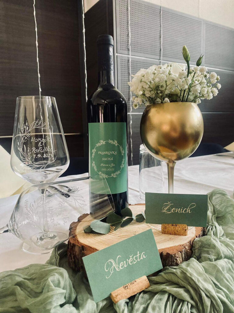 Svatba je momentem, kdy se setkáváte se všemi důležitými lidmi Vašeho života a dobré víno by zde nemělo chybět. Rádi Vám připravíme víno s Vaším vlastním návrhem, etiketa tak může ladit s celým konceptem Vaší svatby.